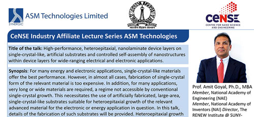 ASM Technologies Ltd collaborates with Centre for Nano Science and Engineering (CeNSE), IISc in an Industrial Affiliation Program. ASM aims to work closely with CeNSE in the following,